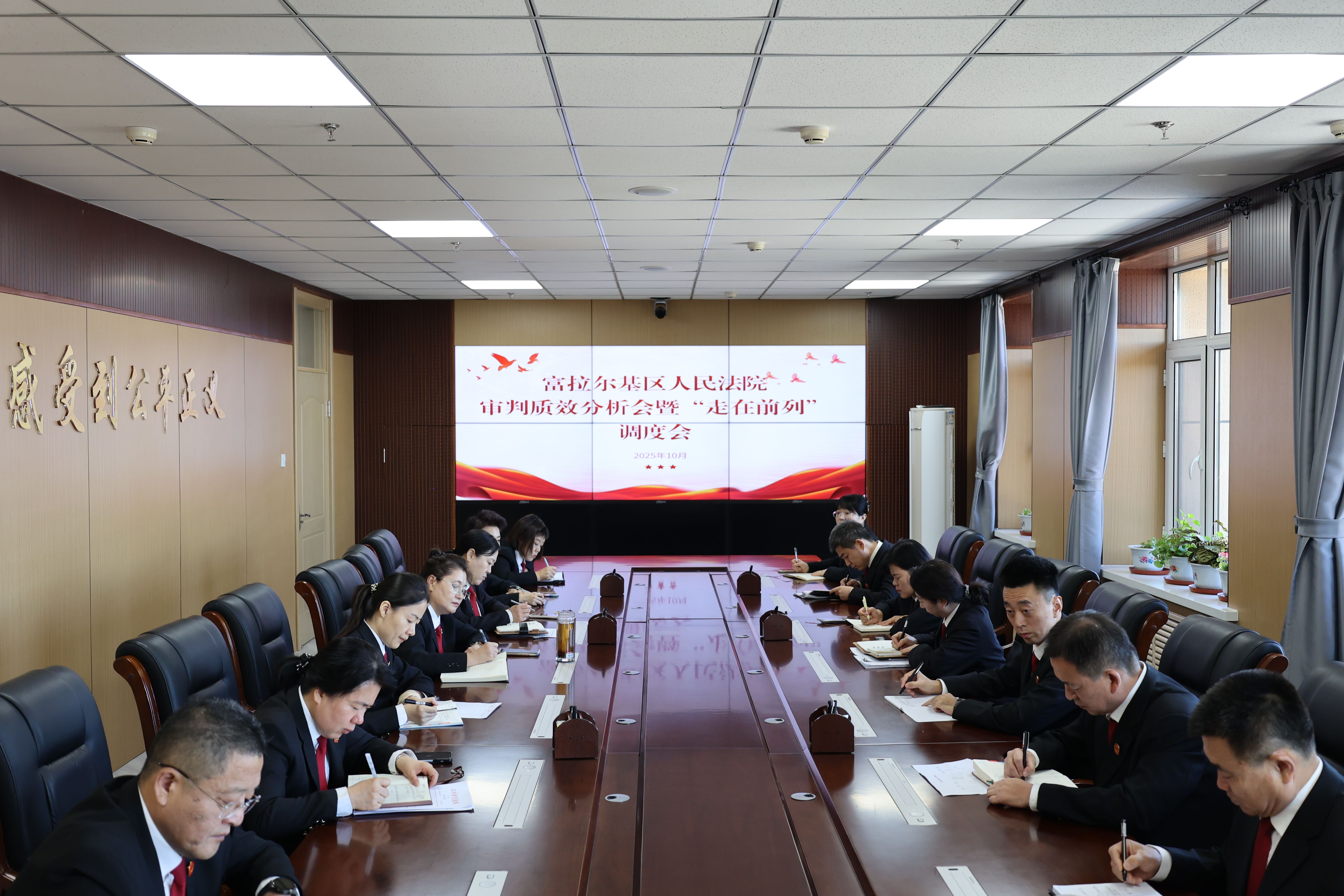 为深入贯彻落实齐齐哈尔市中级人民法院关于全市法院审判质效和“走在前列”工作调度会议精神,结合我院审判执行工作态势,对下一步工作进行再部署、再推进,10月23日,富拉尔基区法院召开审判质效分析会暨“走在前列”调度会。党组书记、代院长赫楠及全体院领导、各部门负责人、员额法官参加会议。
