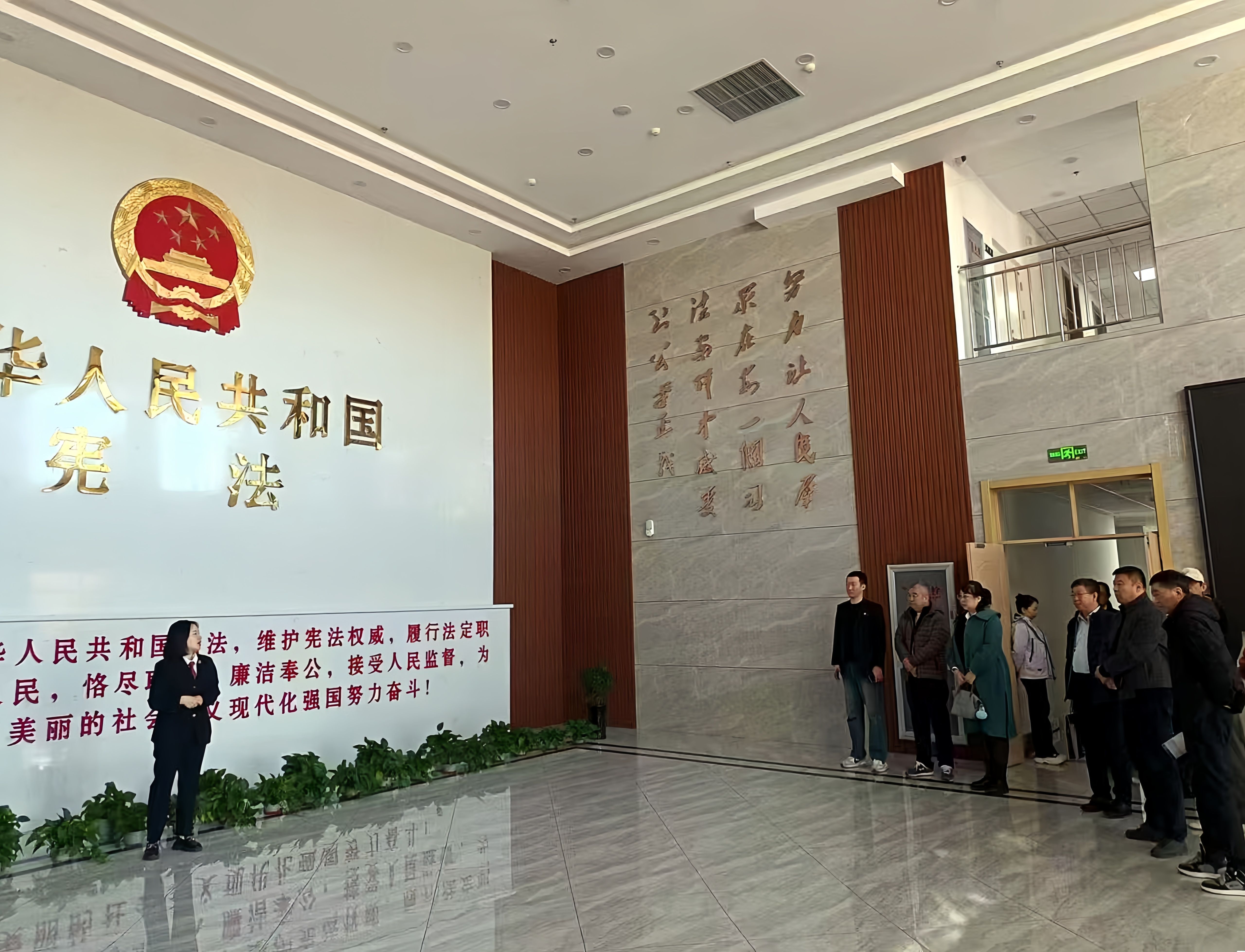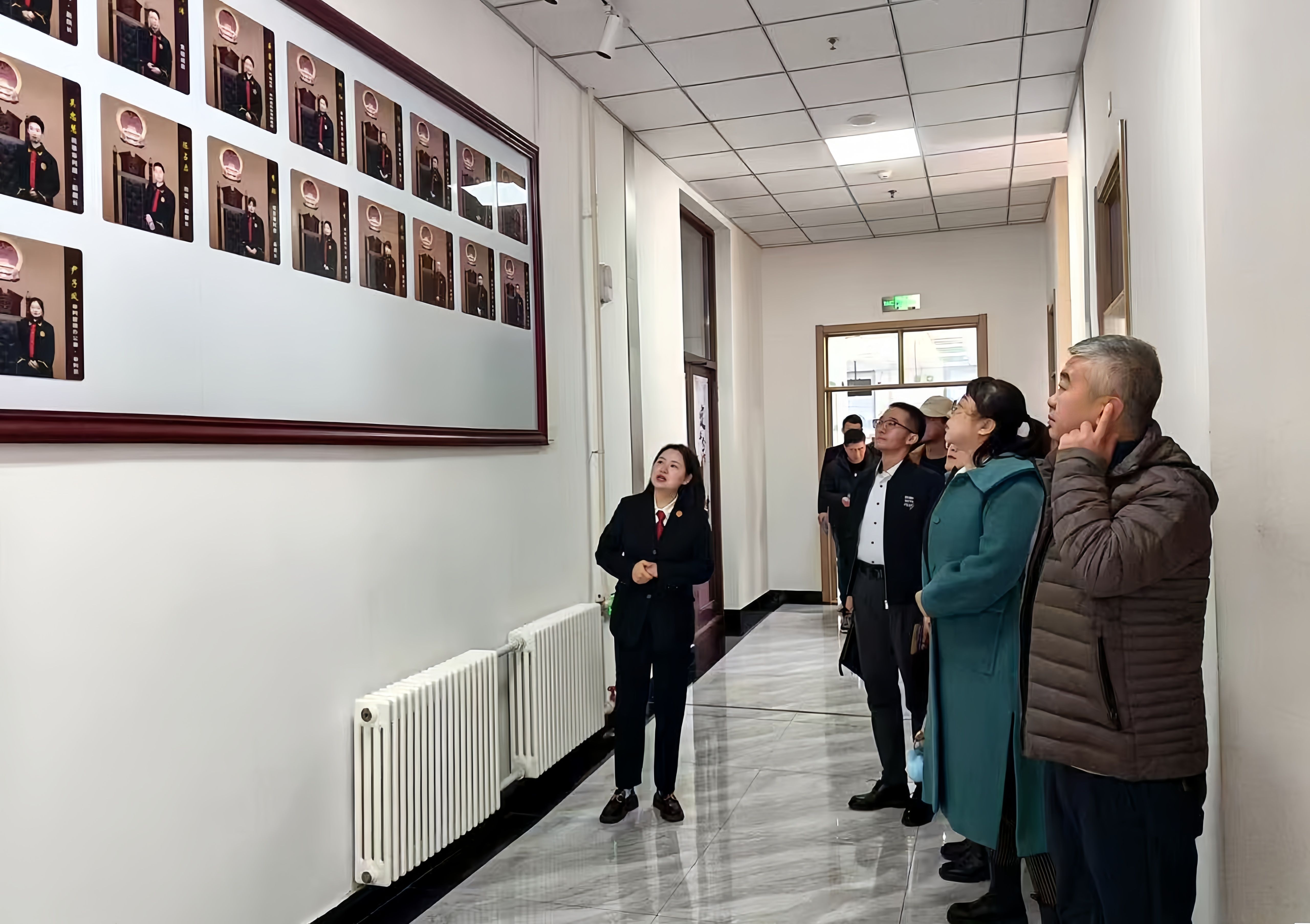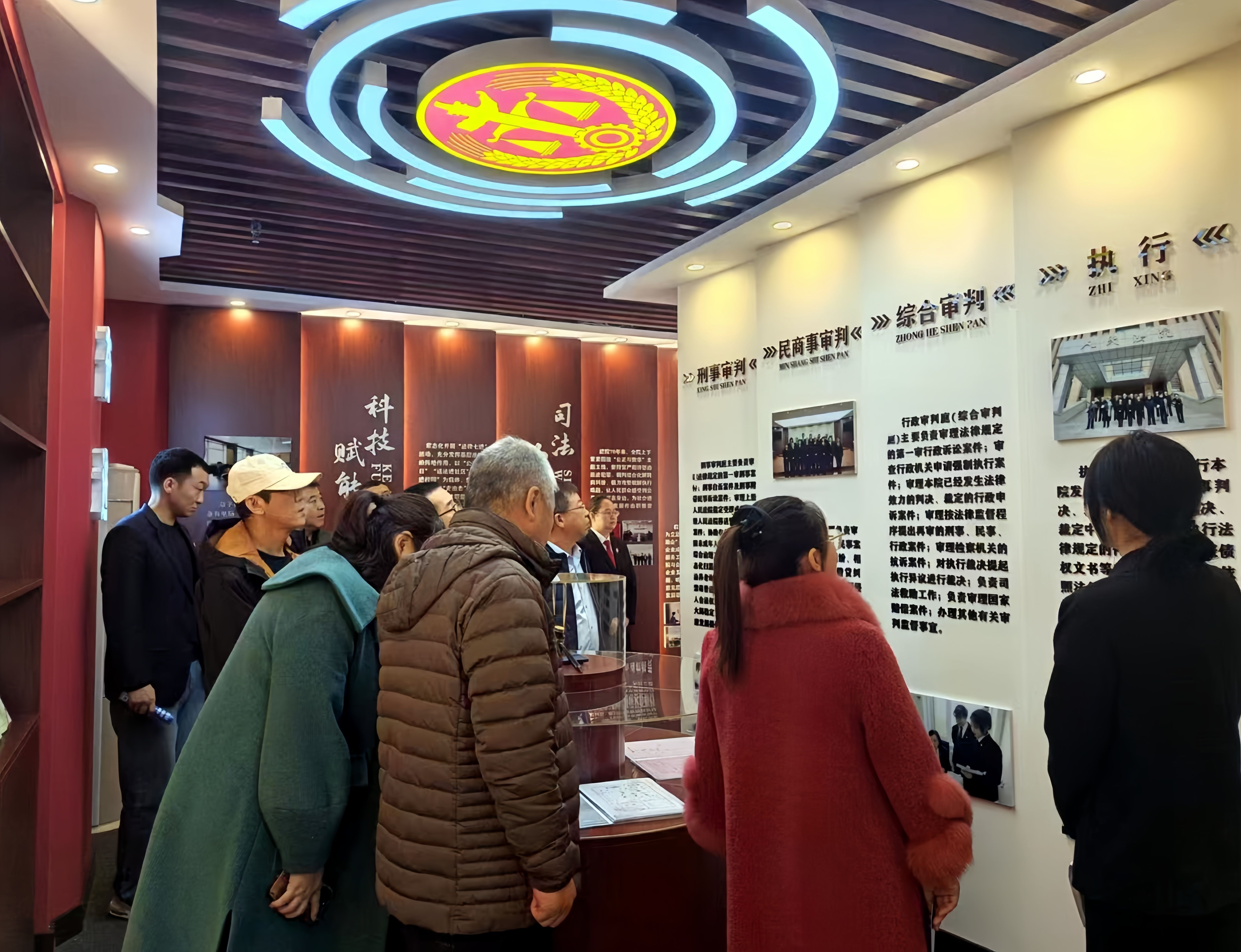 庭审结束后,在讲解员的引导下,银行工作人员依次参观了诉讼服务中心、科技法庭、院史馆等区域。在诉讼服务中心,讲解员详细讲解立案登记、线上调解等便民举措,参观人员实地体验智慧法院建设成果,亲身感受“一站式”多元解纷机制的高效便捷;走进科技审法庭,“零距离”感受现代化科技设备为法院审判工作带来的技术保障,体会科技赋能对提升审判执行质效的关键作用;驻足院史馆,讲解员借助珍贵史料、老照片与实物展品,生动讲述富区法院的发展历程,让大家深刻感悟一代代法院人传承不息的法治精神。