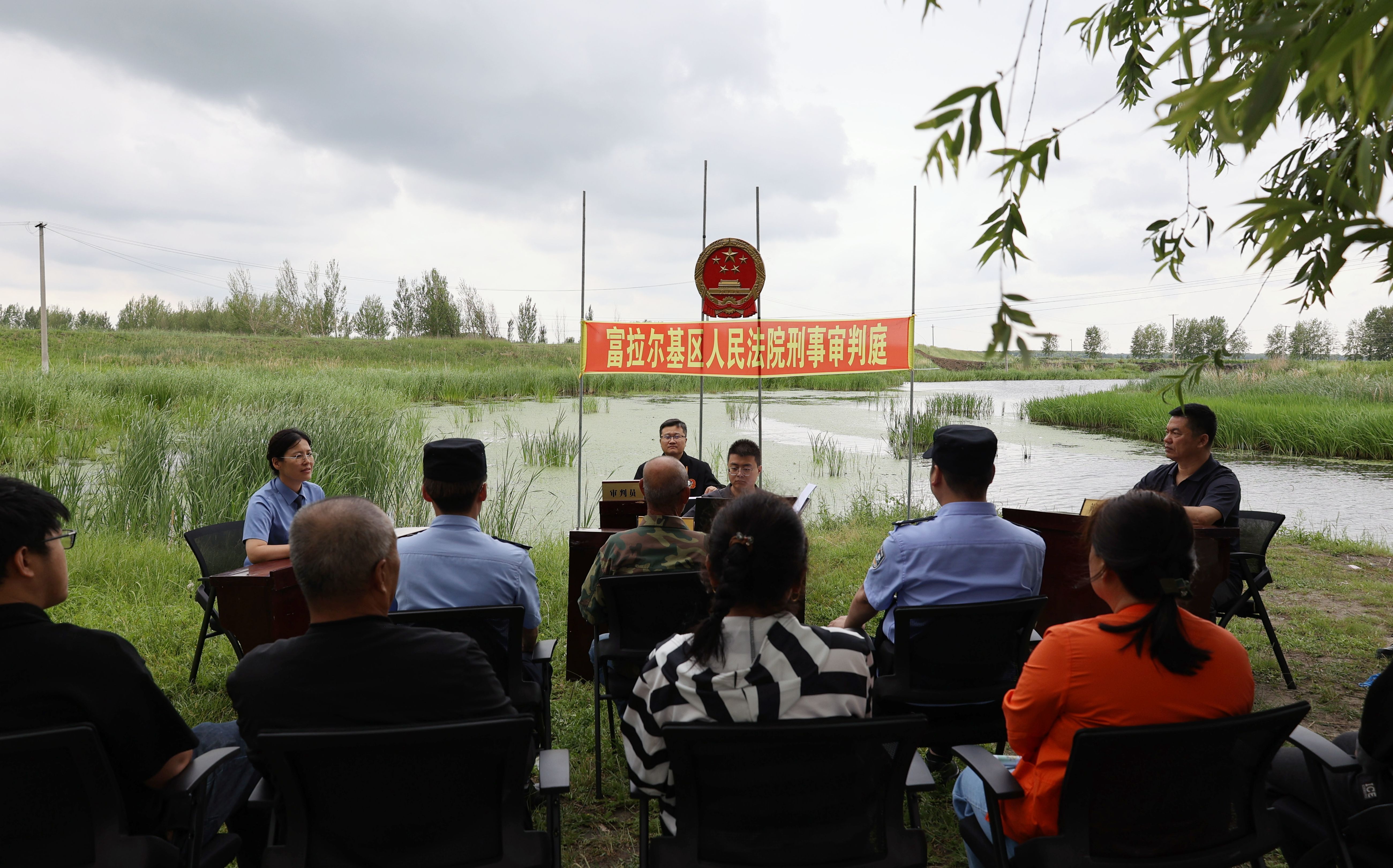2024年,办案法官走进富拉尔基区某乡某村,公开审理杨某杰非法捕捞一案,将庭审现场变为“普法课堂”,结合案情现场释法,既严厉震慑非法捕捞行为,又凝聚基层治理合力,为乡村振兴注入法治力量。从校园到社区,从企业到乡村,以群众喜闻乐见的方式传播法律知识,与公安、检察、司法机关携手共筑“平安红岸”,让法治信仰深植人心,群众司法满意度持续稳步提升。