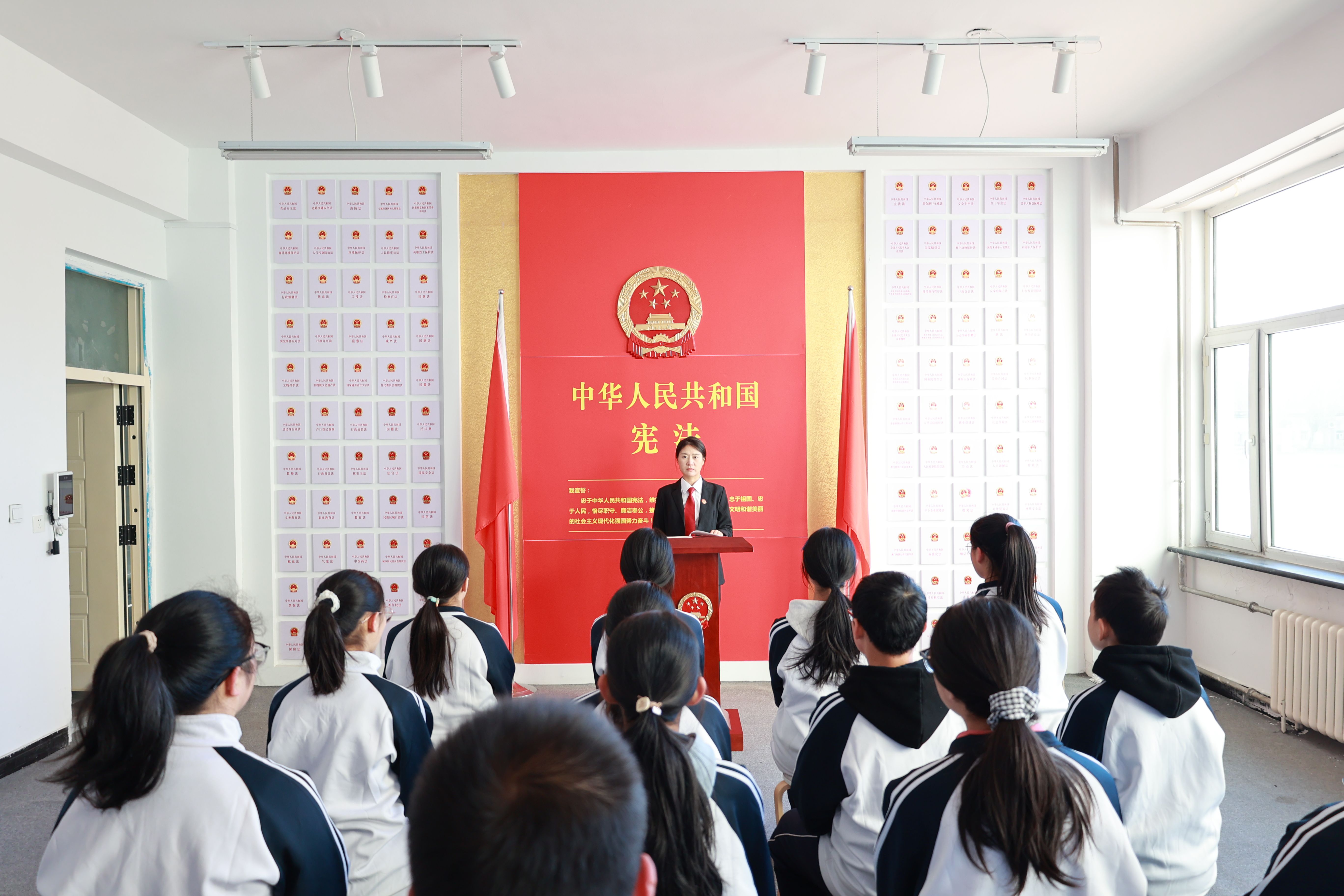 为进一步加强青少年法治教育,深入推动宪法精神在校园落地生根,12月11日下午,富拉尔基区人民法院民事审判庭副庭长、中国一重第二中学法治副校长朱英男走进校园,为同学们上了一堂“宪法课”。