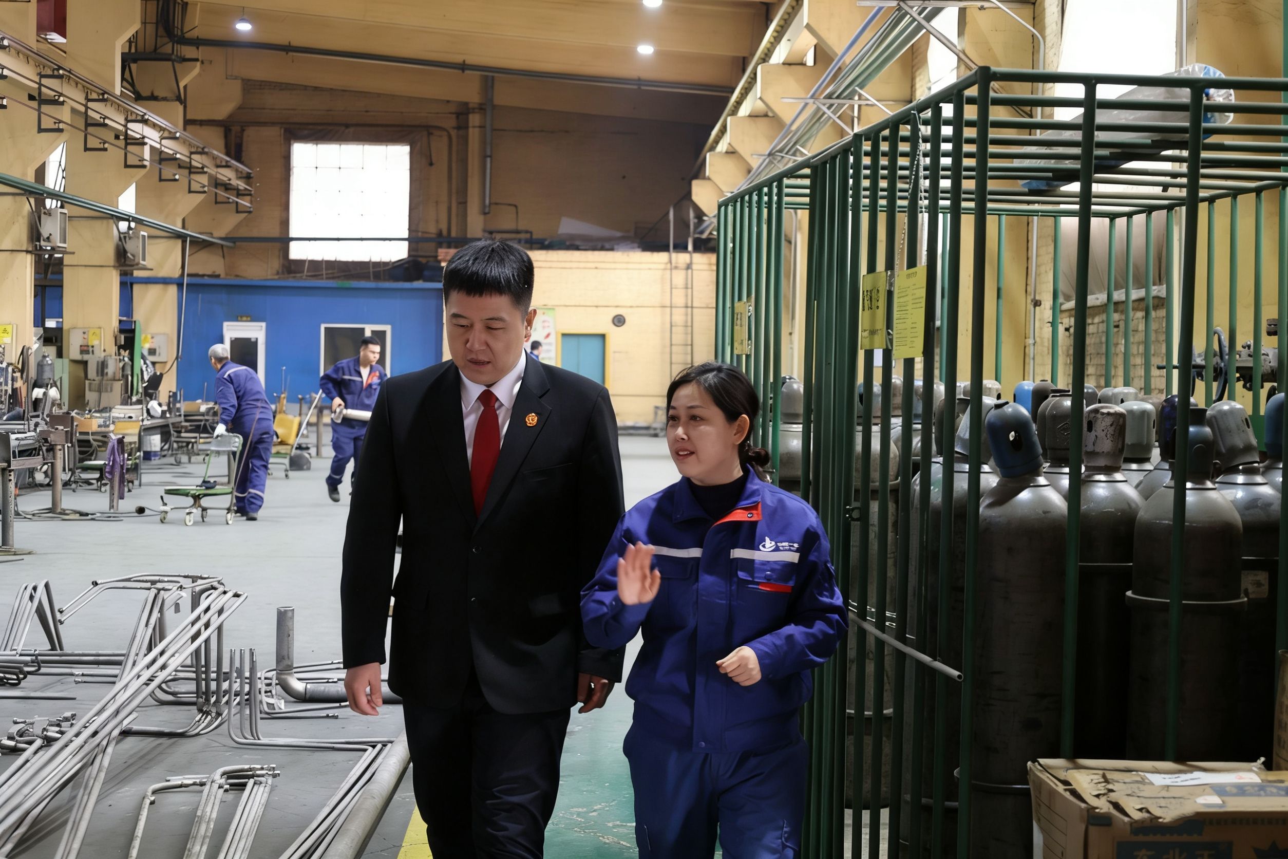 为进一步做好代表委员联络工作,自觉主动接受监督,广泛听取意见建议,持续推动法院工作高质量发展,1月6日,富拉尔基区人民法院党组书记、代院长赫楠来到中国一重集团(黑龙江)重工有限公司大型装备制造厂,走访省人大代表朱红亮同志,认真听取代表对法院工作的意见建议。