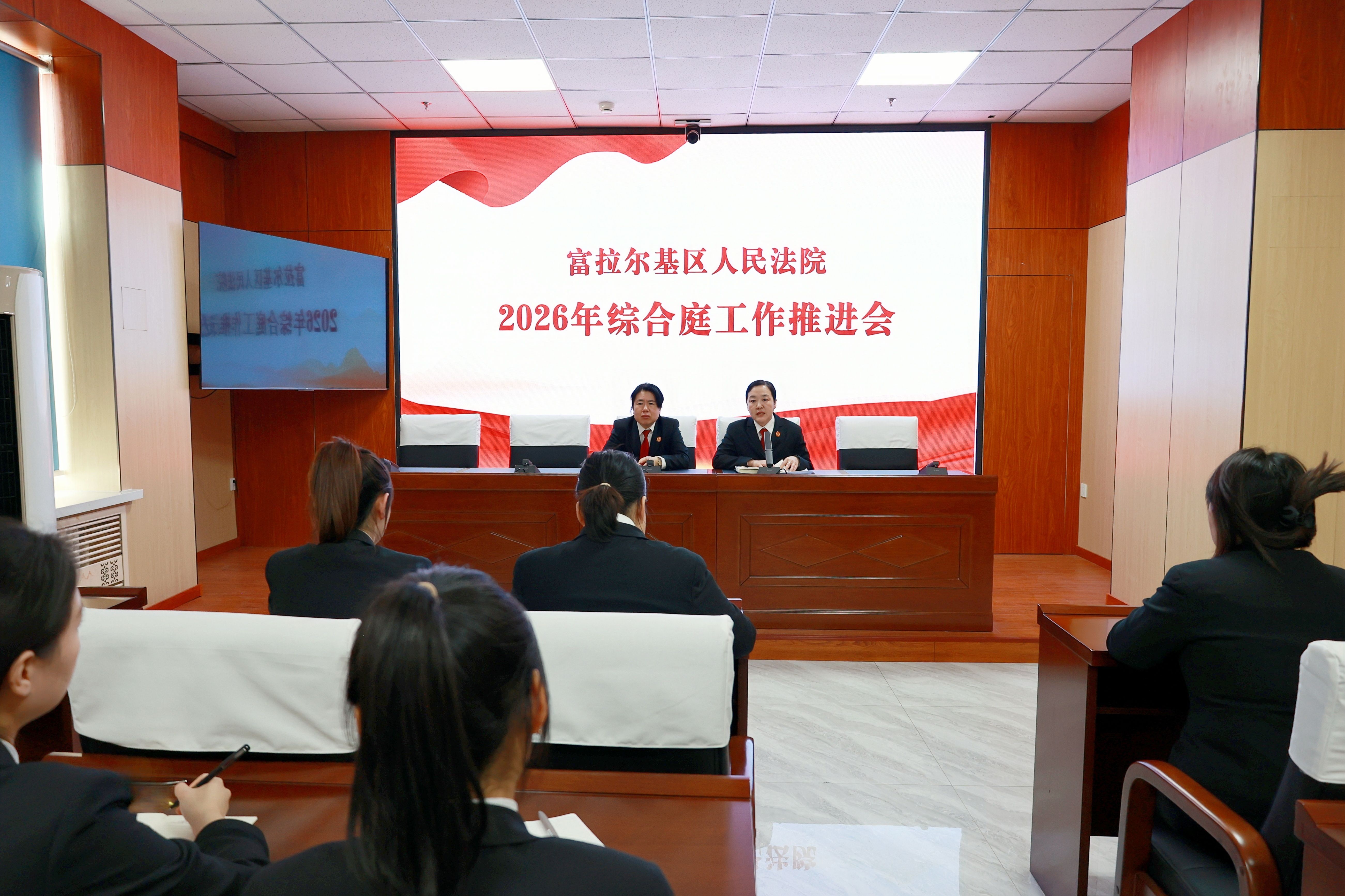 3月18日下午,富拉尔基区人民法院综合审判庭召开2026年工作推进会。党组成员、副院长王谊兰出席会议并发言,综合审判庭庭长洪涛主持会议,全庭干警参加会议。