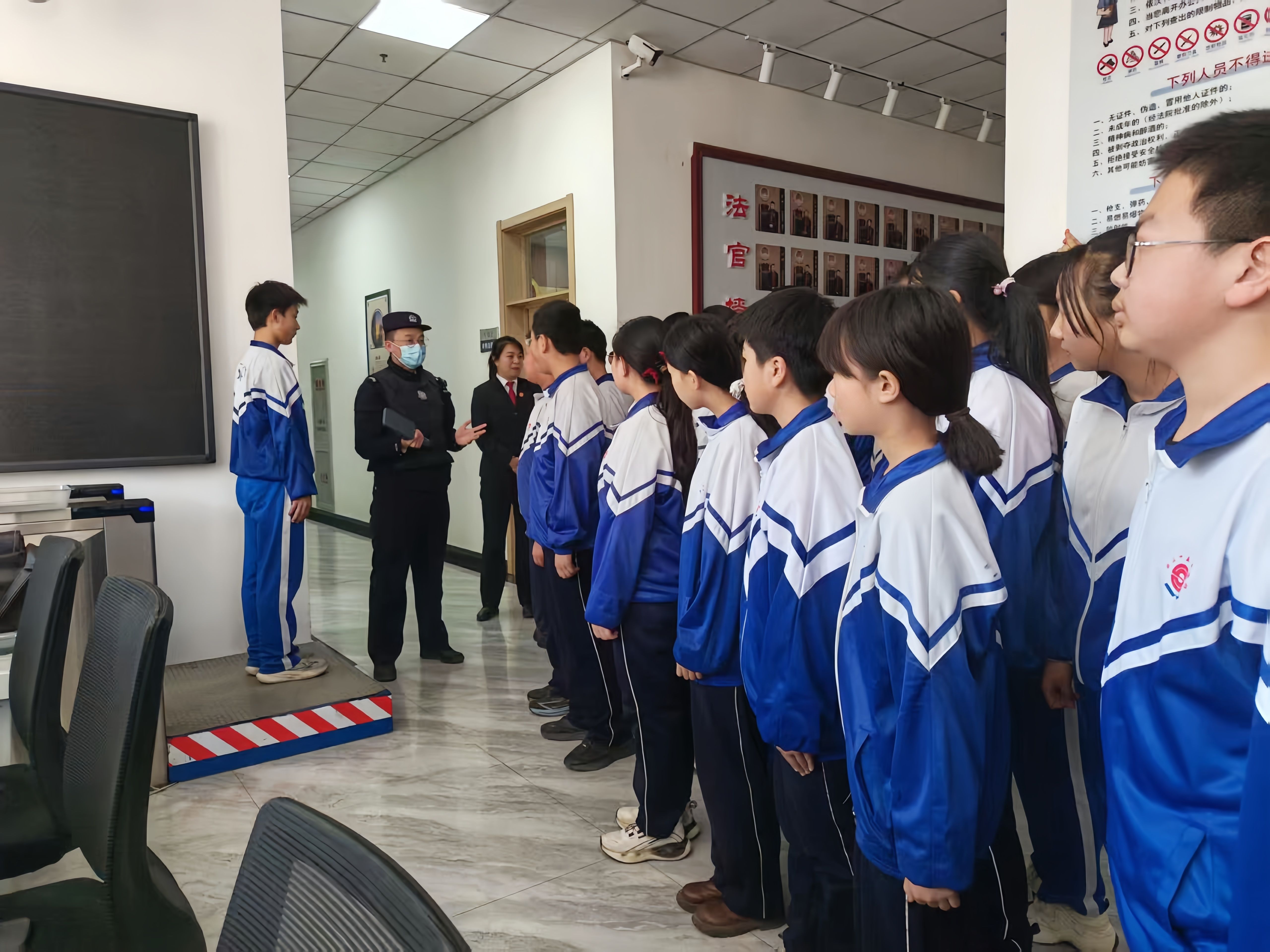 在庄严肃穆的审判法庭,专业的现代化庭审设备、规范的法庭席位设置,都体现着法律的权威,当同学们好奇地坐上审判员与公诉人的席位,亲身感受法庭的威严布局时,司法的神圣与严谨在心中留下了深刻印记。