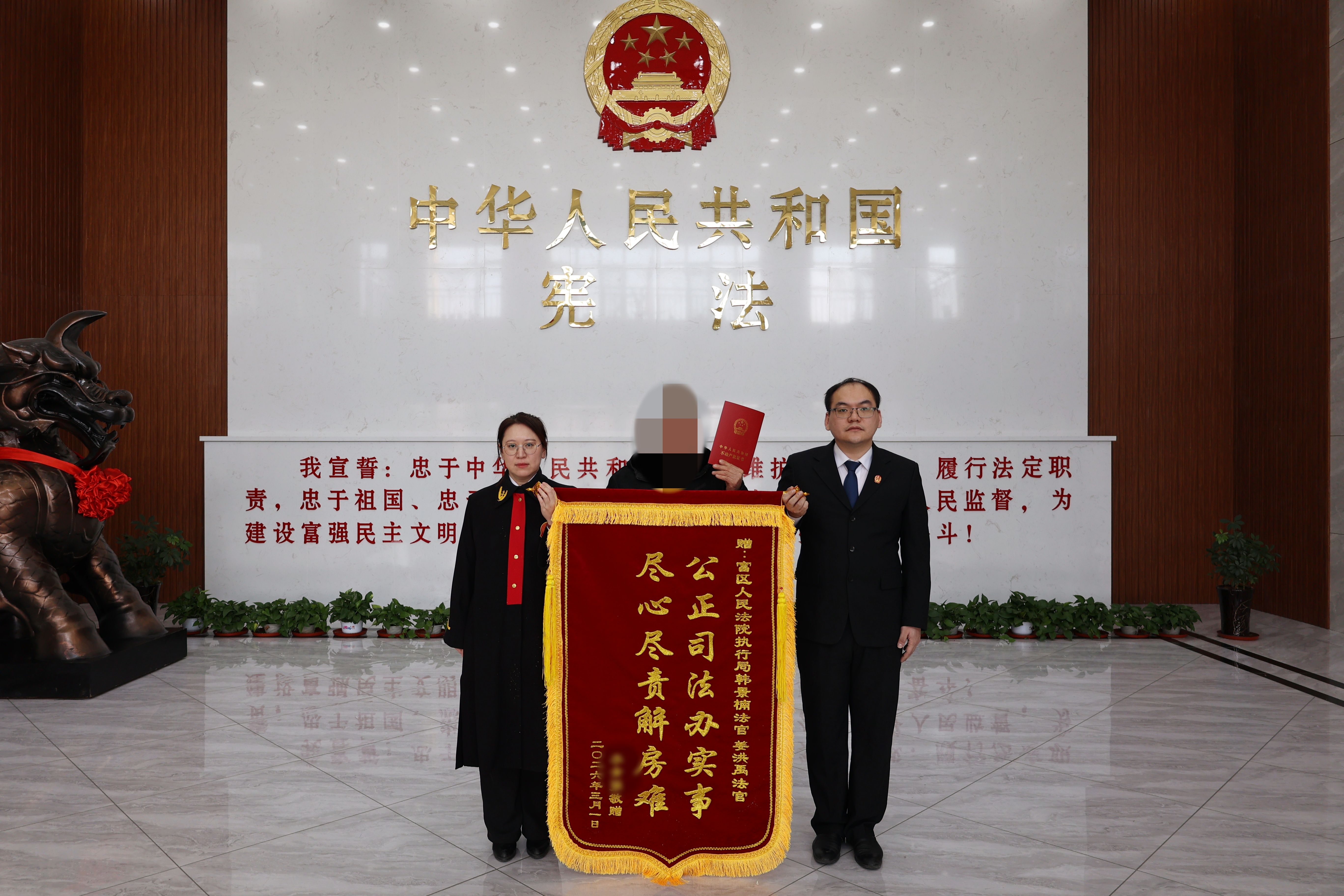 一纸房产证,承载着群众的安居期盼,更彰显着司法为民的初心使命。富拉尔基区人民法院成功办结一起涉不动产登记历史遗留案件,帮助当事人李某拿到苦等16年的不动产权证书。当事人难掩激动,专程送来锦旗向承办法官和执行干警致谢。