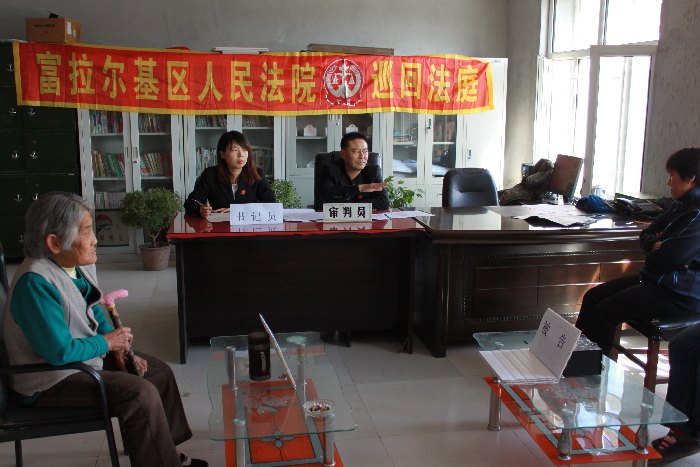 近日齐齐哈尔市富拉尔基区人民法院,立案受理了一起赡养纠纷案件。为方便当事人诉讼,彻底解决他们之间的纠纷,更好的宣传老年人权益保护法,9月27日,富拉尔基区人民法院民二庭继续开展巡回法庭活动,将庭审现场搬到了当事人所在的后水村村委会,开庭审理了这起赡养纠纷。经过法官的耐心劝说及村委会干部的调解,4名被告认识到了自己的错误,应该对老母亲尽到应尽的赡养义务。不仅是有悖我国传统百善孝为先的道德观念,更是违背了我国的法律规定。他们在庭审中与老母亲达成了调解协议,并表示在以后的生活中不仅会保证老母亲的物质生活,更会在精神上给她慰藉,让她安度晚年。庭审后,巡回法庭又向同村的百姓进行了法律宣传,达到了审理一案、教育一片的社会效果。